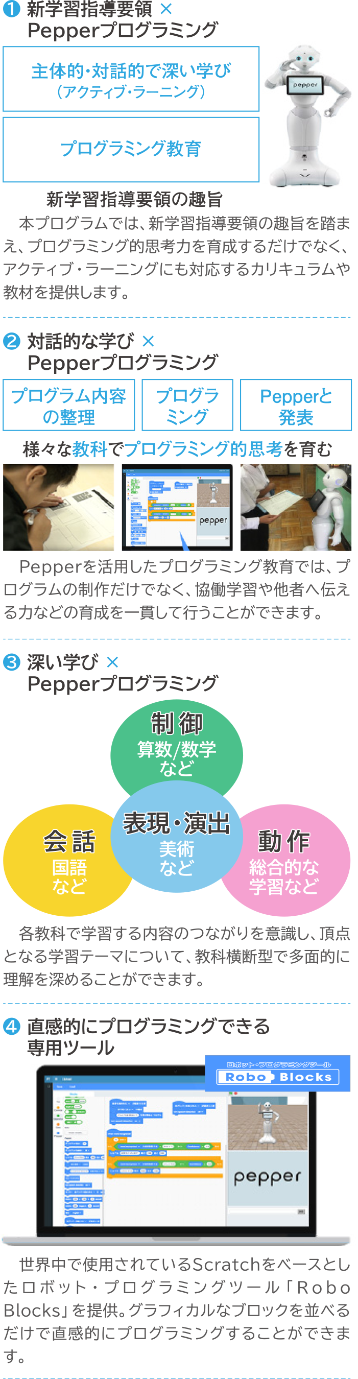 現在の子供たちは、将来ロボットやAIとともに生活や仕事をすることが予想されています。Pepperの顔はとても愛らしく、子供たちの興味を引きます。そして、他のロボットでは体験することができない感情を持ってコミュニケーションをしているような感覚を体験できます。この経験は、将来の自分たちを予想し、未来を考えようとする姿勢を育てることに繋がります。